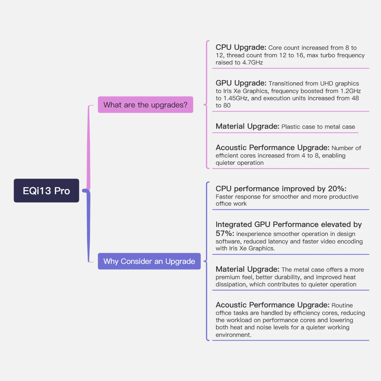 - 🎉 【Built-in 85W PSU – Clean Desk Solution】Say goodbye to tangled cables and bulky adapters. The EQi13 Pro runs on a single power cable, helping you maintain a clean, organized workspace while maximizing efficiency.